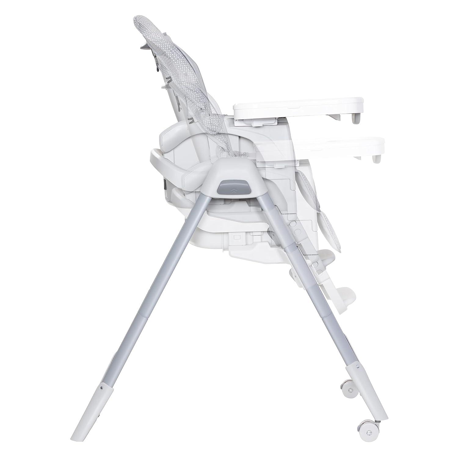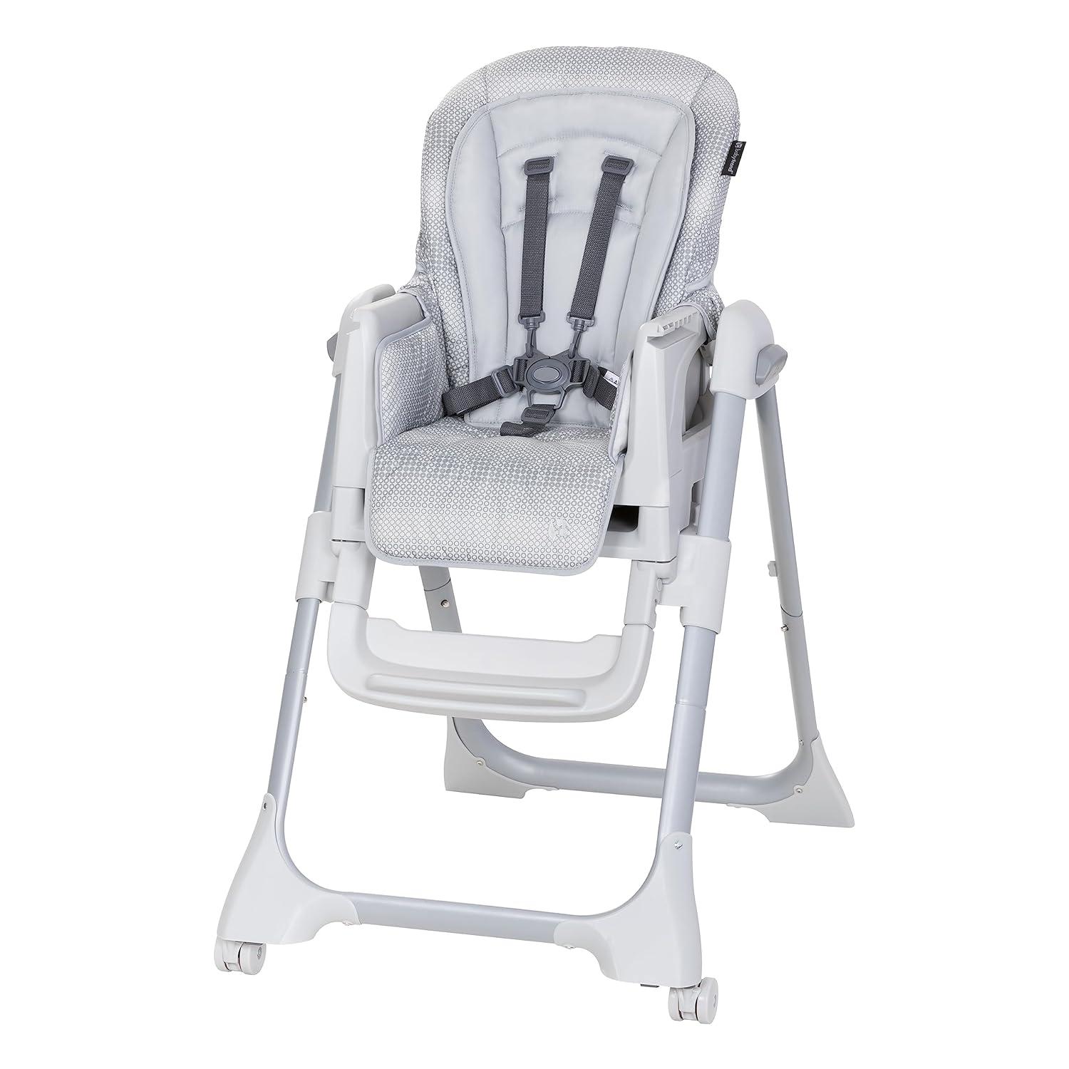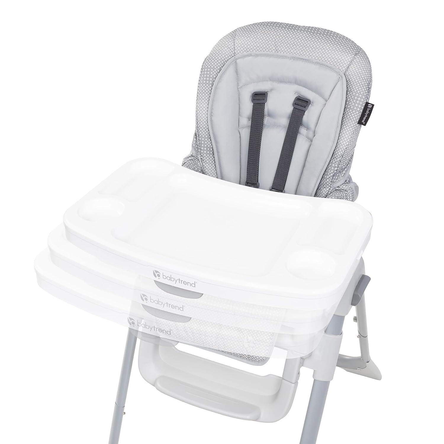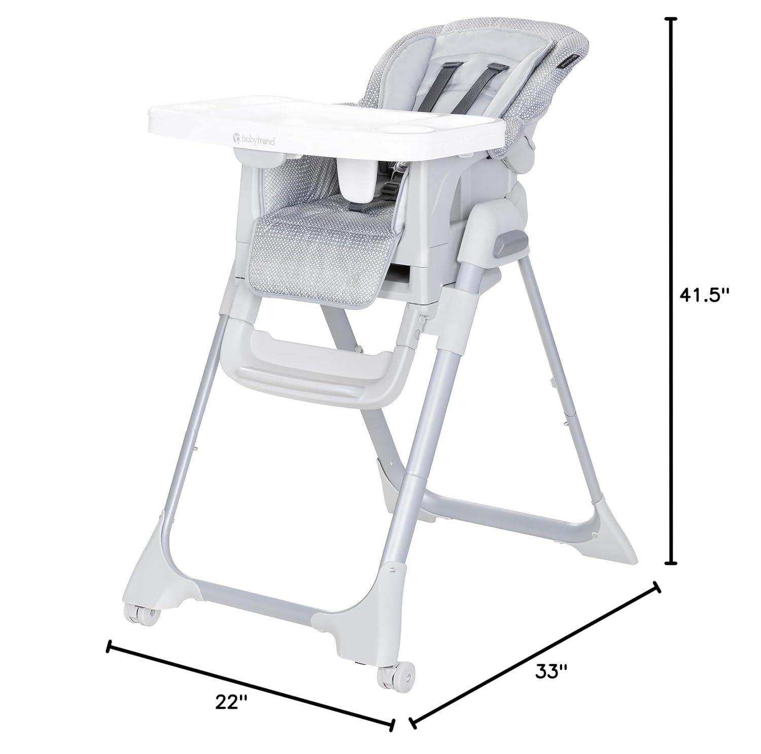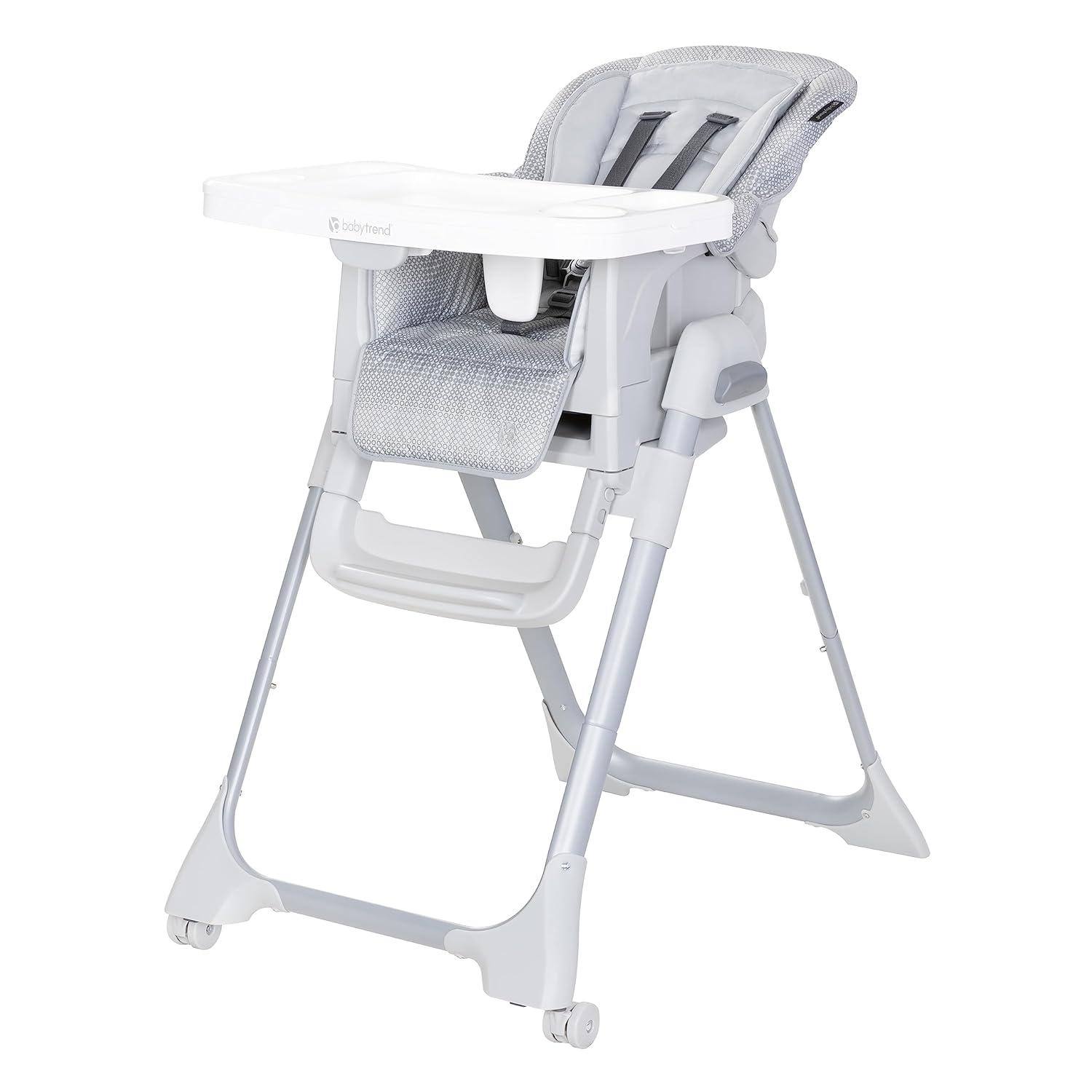 The Baby Trend A La Mode Snap Gear® 5-in-1 High Chair transforms as your child grows. Use it as an Infant High Chair, Traditional Full-Size High Chair, Infant Seat, Toddler Seat and a Secure Infant Car Seat Stand. The multi-position height adjustment and adjustable, removable footrest work together to ensure a comfortable seat at the dinner table. The lockable wheels allow you to easily move it or keep it in place while the multi-position tray adjusts with the touch of your hand.