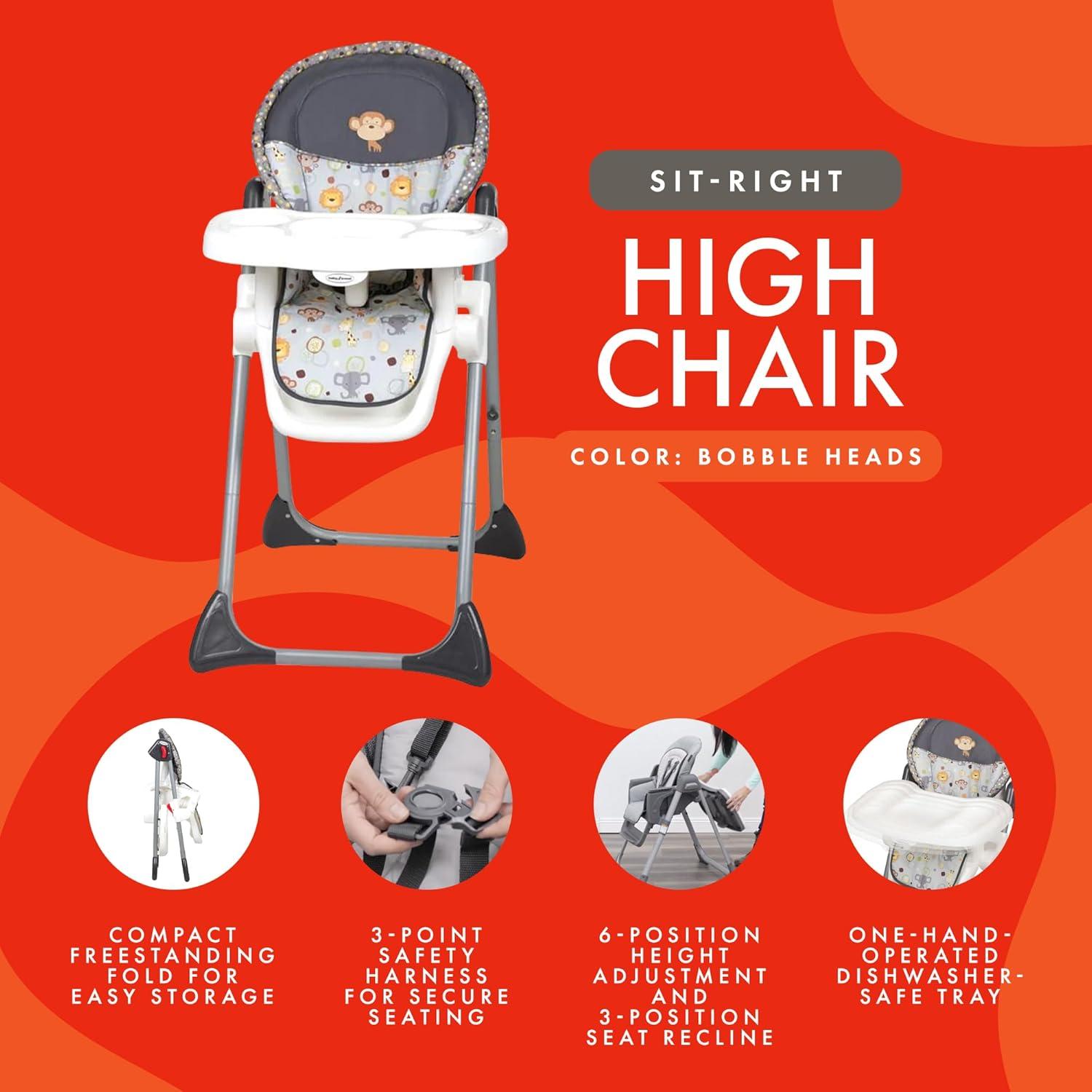 Baby Trend Adapt SpaceSaving Booster High Chair, Pebblestone Aqua(Bobble Heads)
