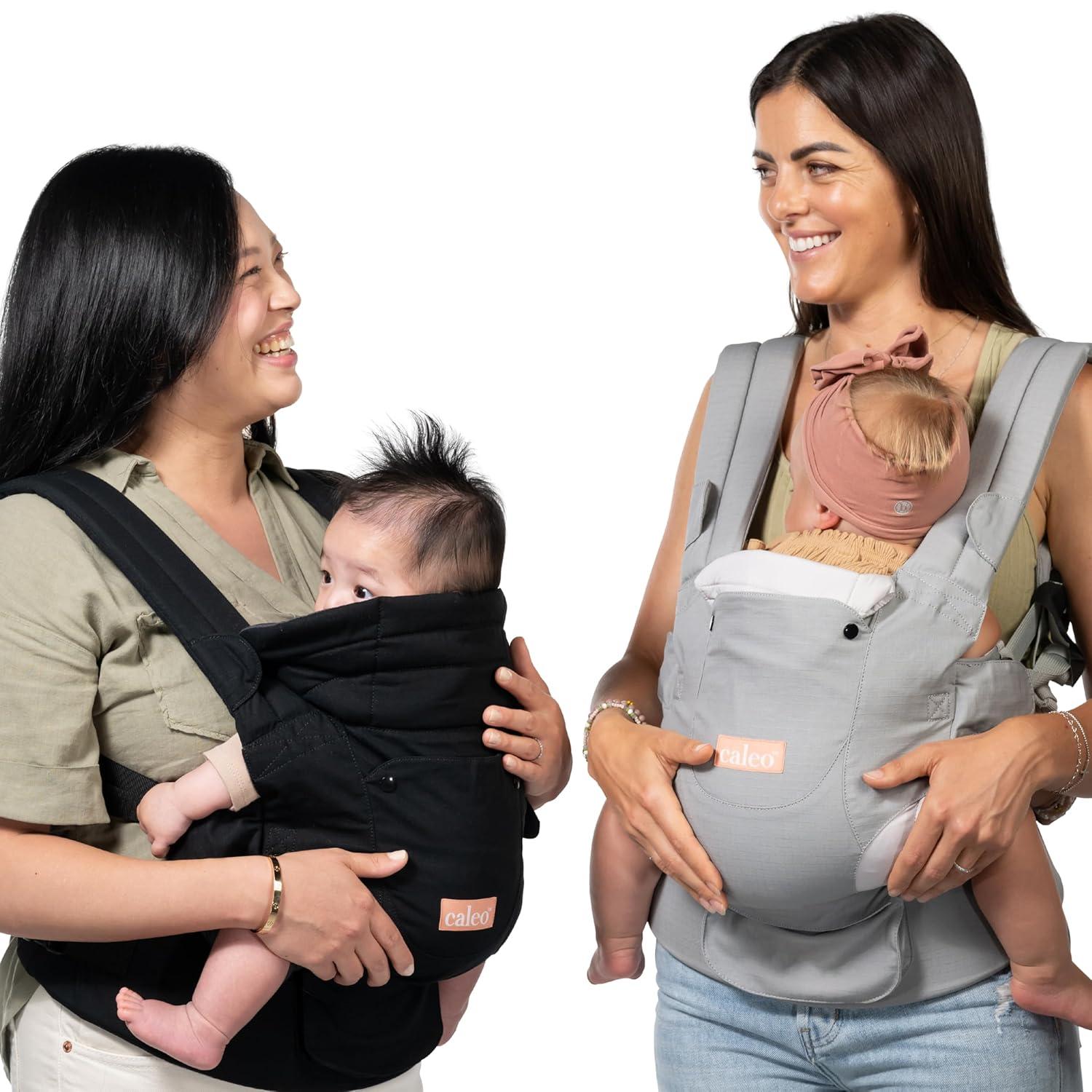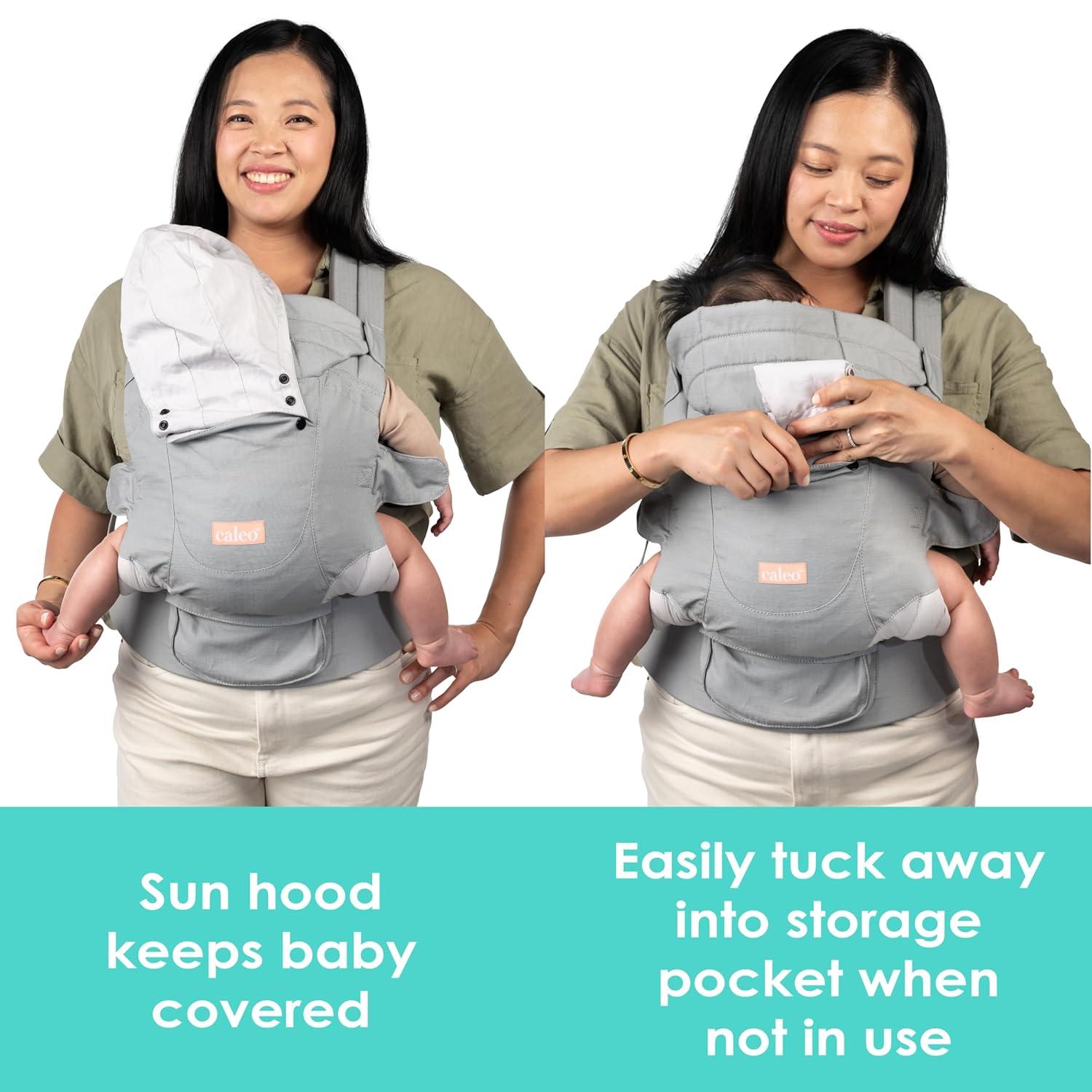 Baby Trend Caleo Charm Deluxe 3‑in‑1 Newborn Carrier, Calypso – 100% Cotton, Machine Washable, Lumbar Support & Weather Protection(Snuggle Grey)