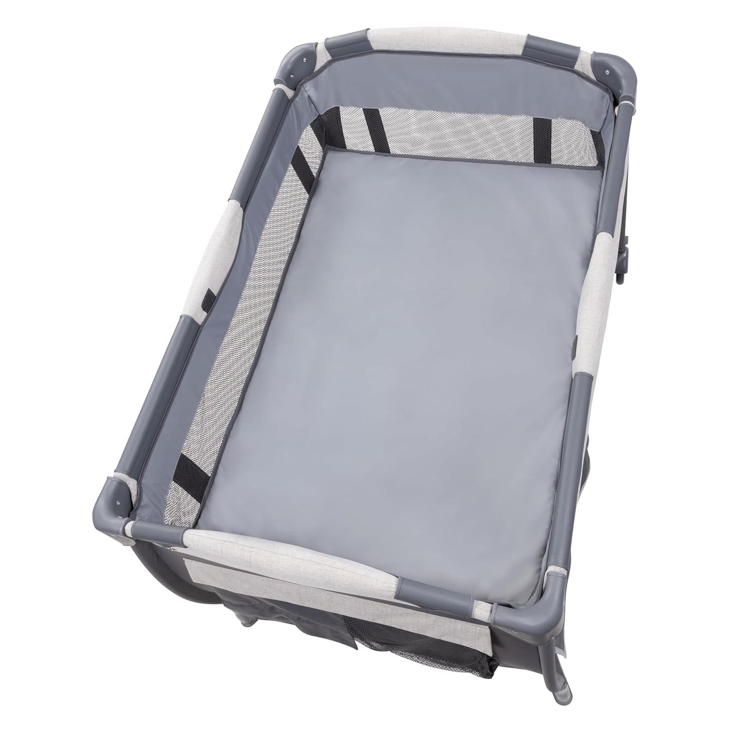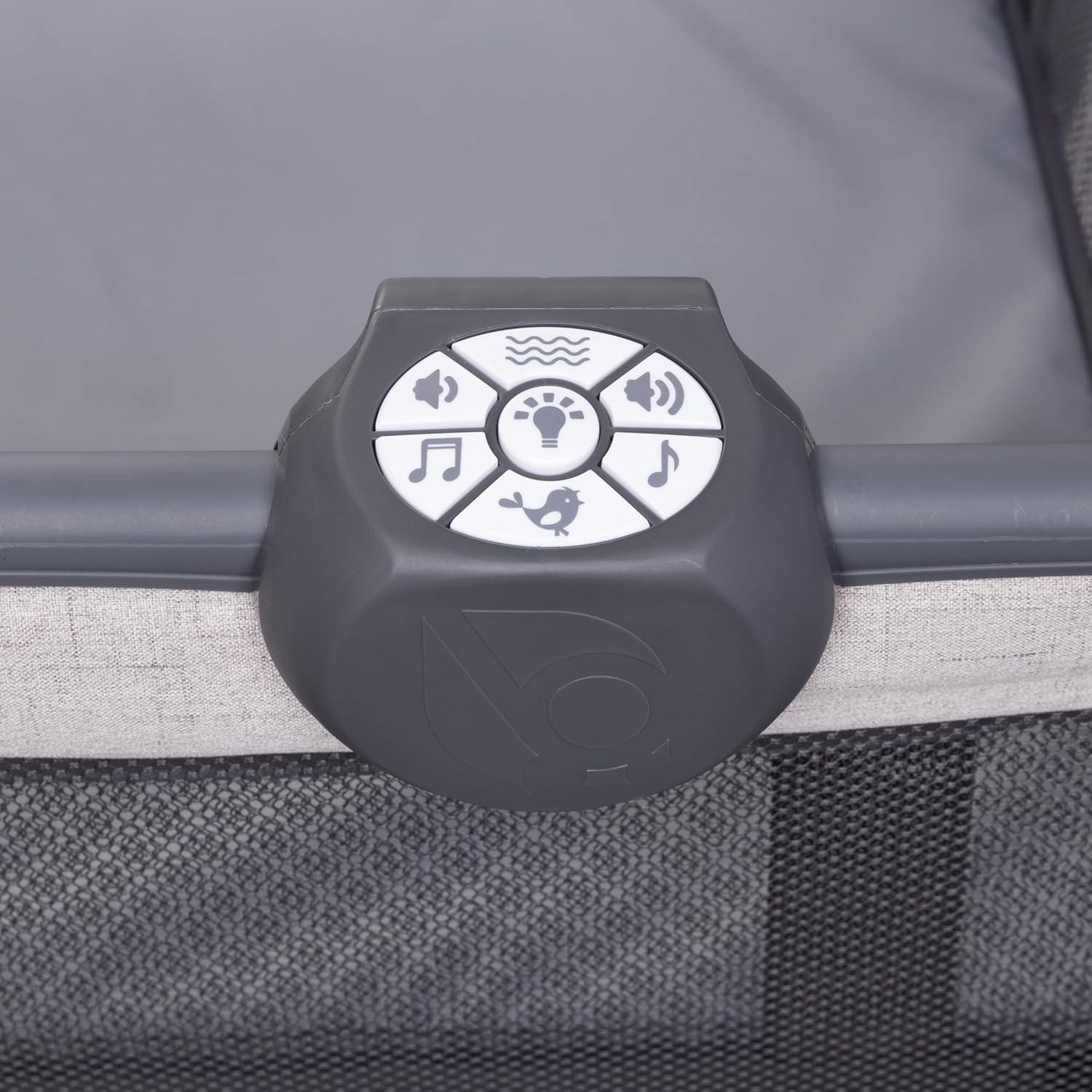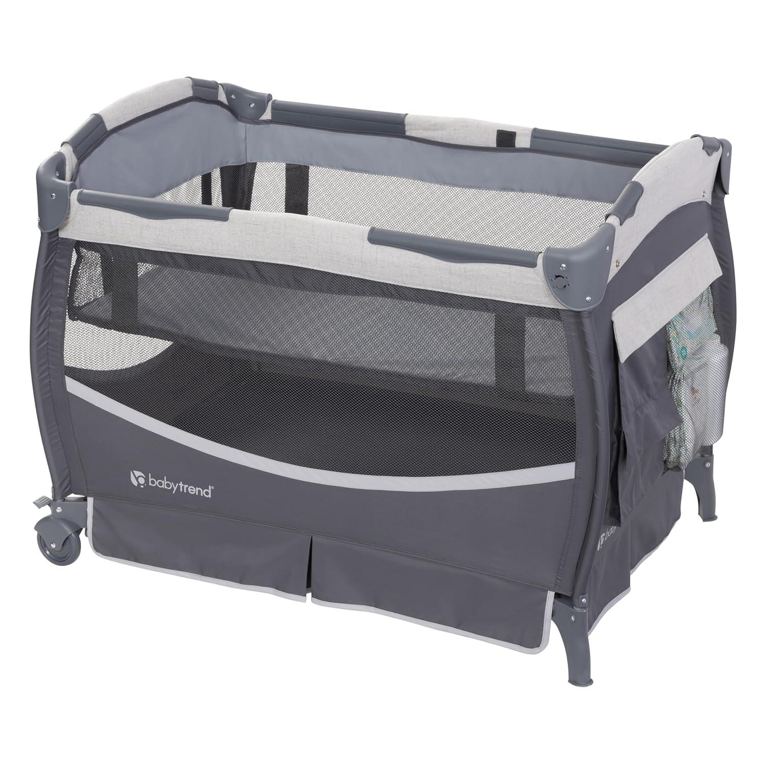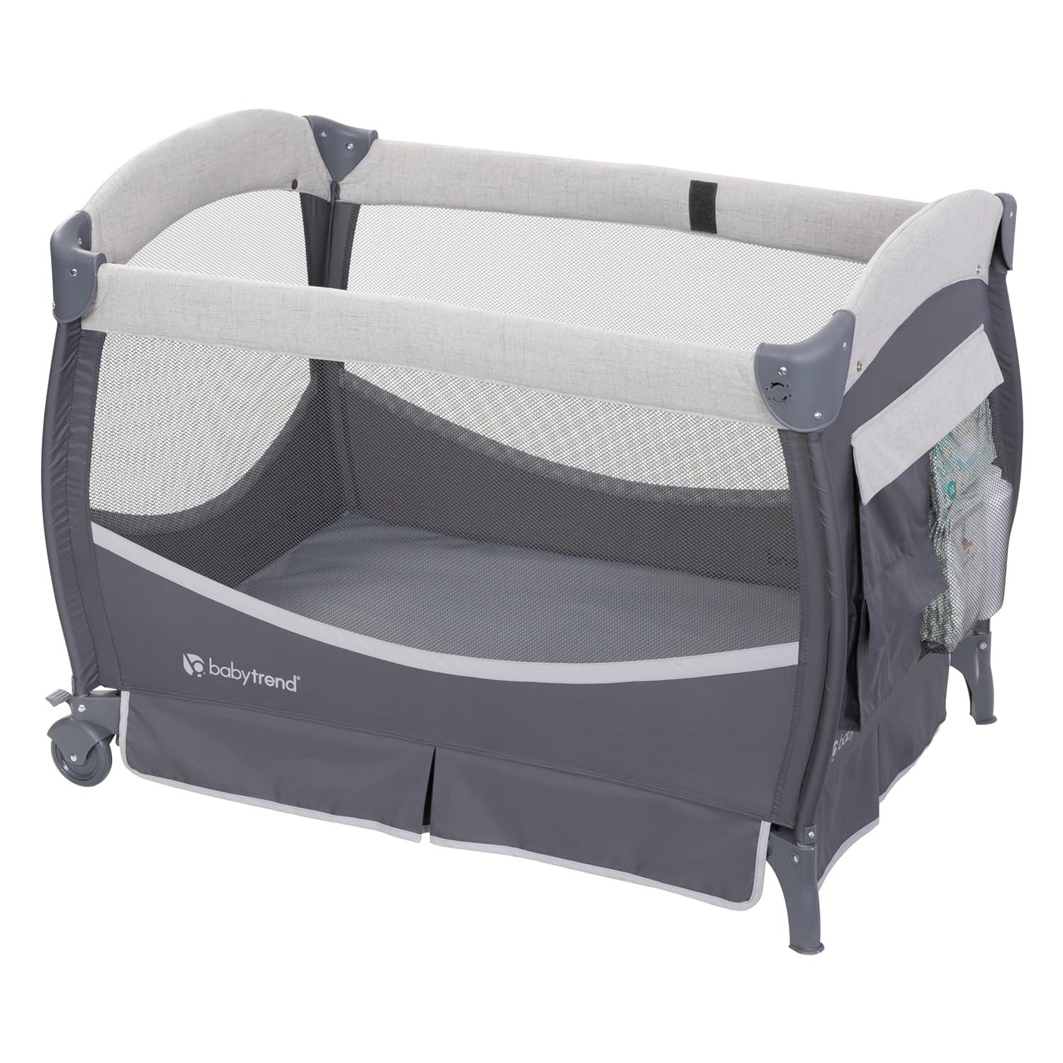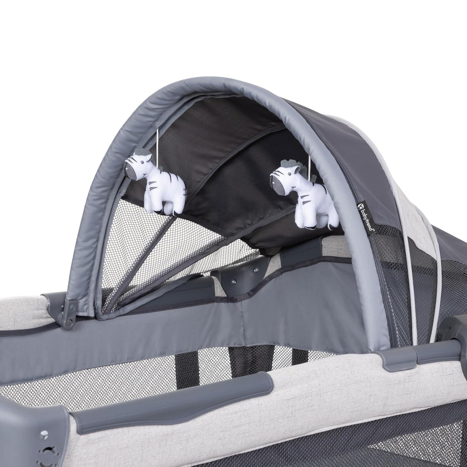 The Baby Trend® Deluxe II Nursery Center is the perfect all-in-one solution for sleeping, diaper changing and playtime! Your newborn will nap peacefully under the shaded canopy after being soothed to sleep by the calming vibrations, night light and peaceful music from the electronic music center. When your little one is awake, simply unzip the canopy to convert it into a toy bar with two plush toys. Diaper changes become a breeze with the changing station, deluxe 3-pocket parent organizer and built-in diaper stacker. The changing table with secure belt conveniently flips over when not in use. As your little one grows, simply remove the bassinet feature and the nursery center is transformed into a safe environment for your child to play. The dual wheels with brakes provide easy mobility and added security. When it's time to travel, simply fold and store the nursery center in the carry tote.