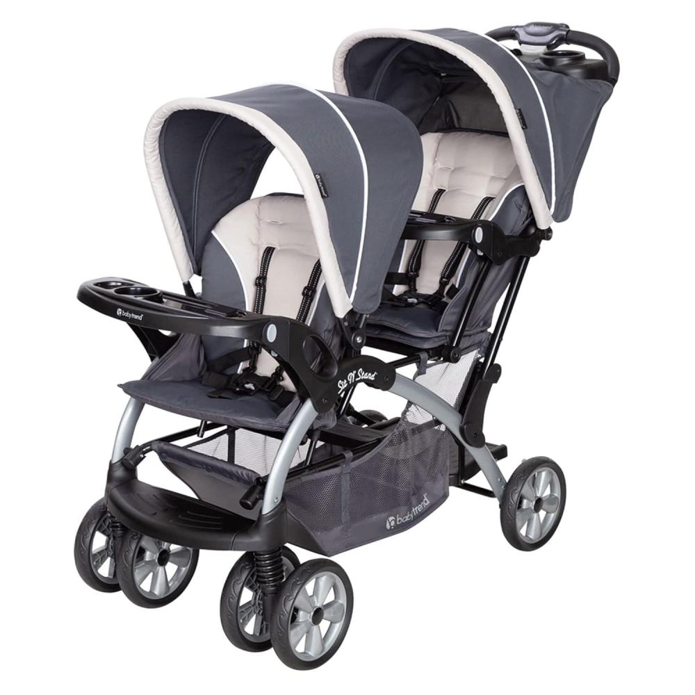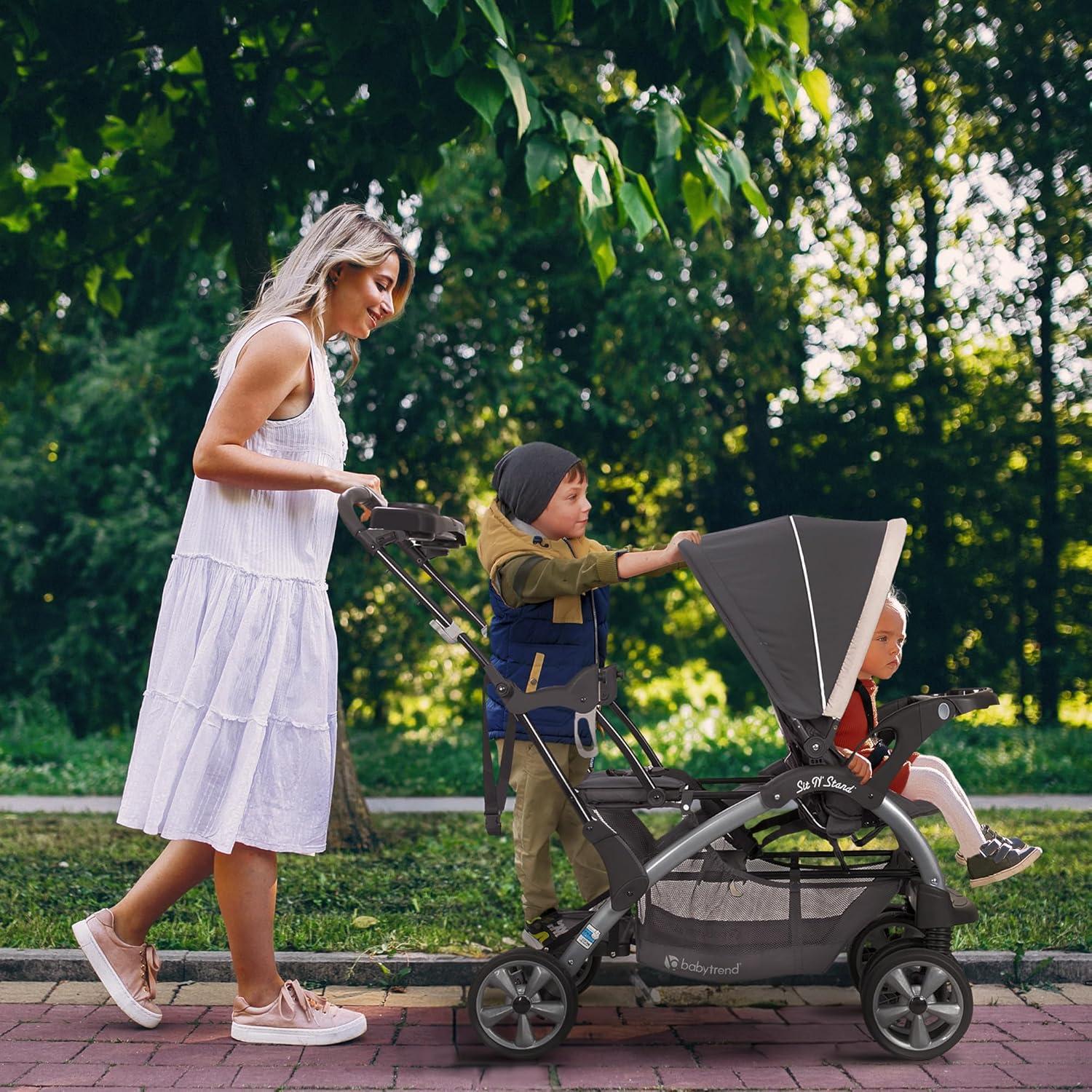 Convertible double stroller with front and rear seats or use the rear seat as a standing platform for ultimate convenience; Recommended for children up to 40 pounds