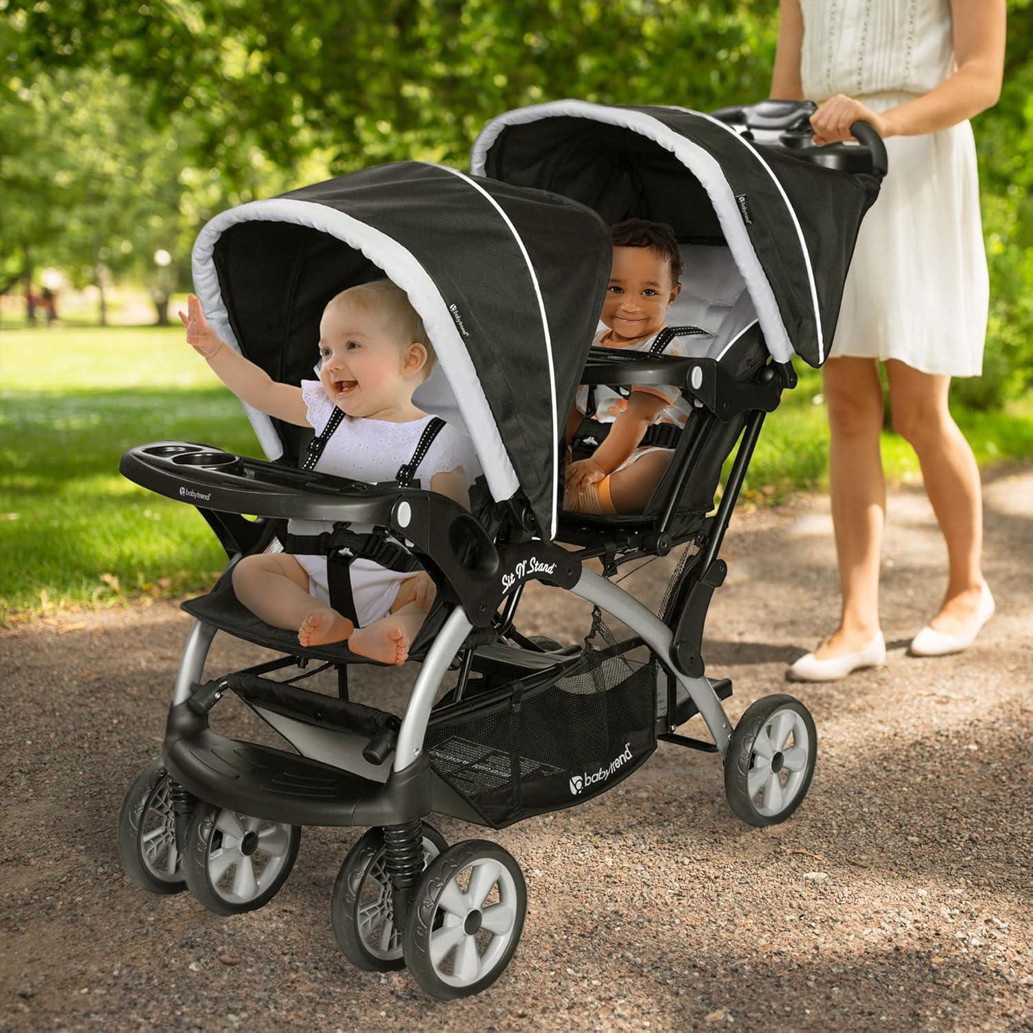 Convertible double stroller with front and rear seats or use the rear seat as a standing platform for ultimate convenience; Recommended for children up to 40 pounds