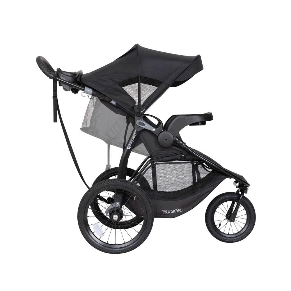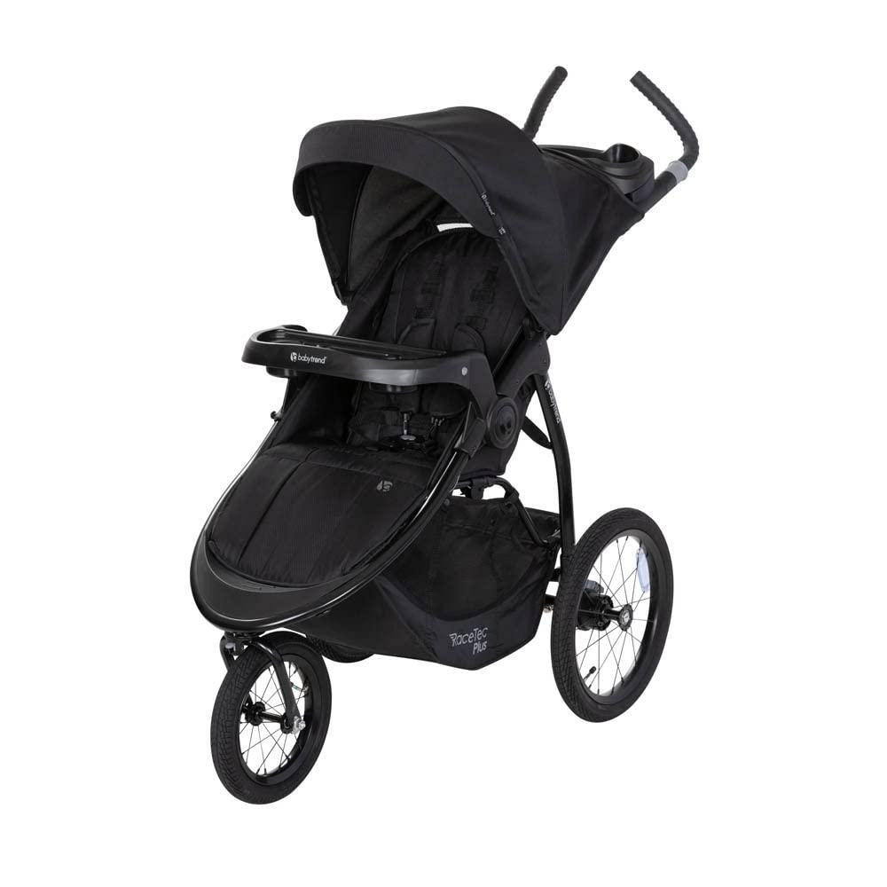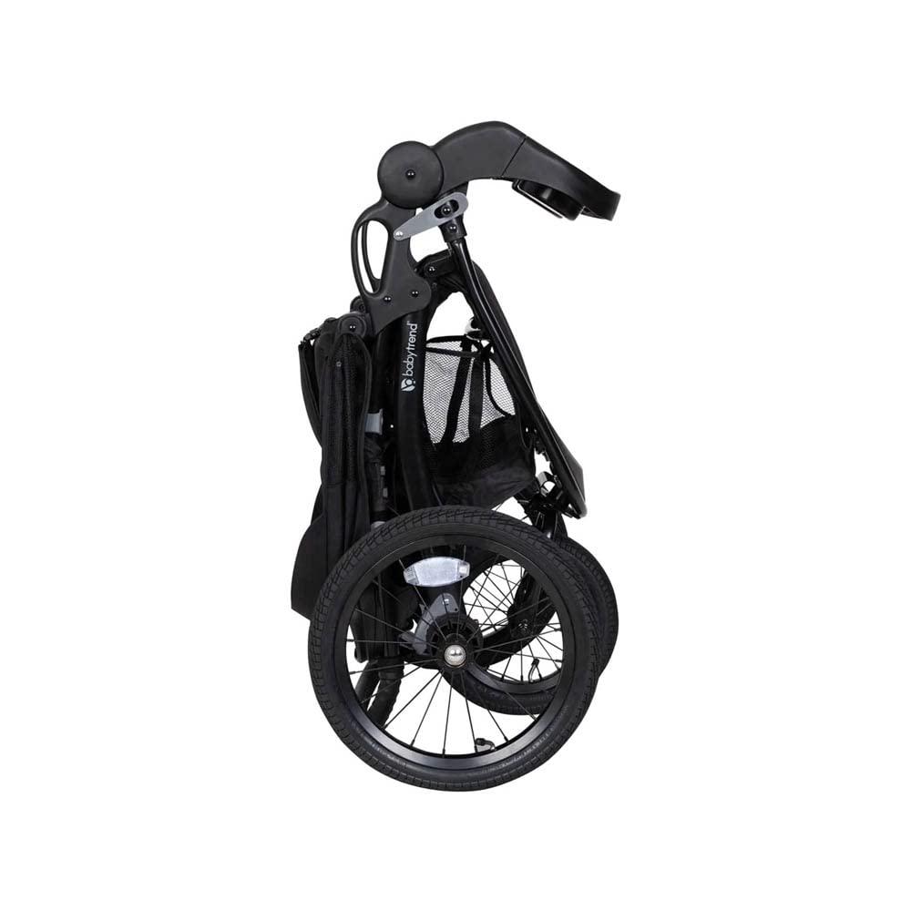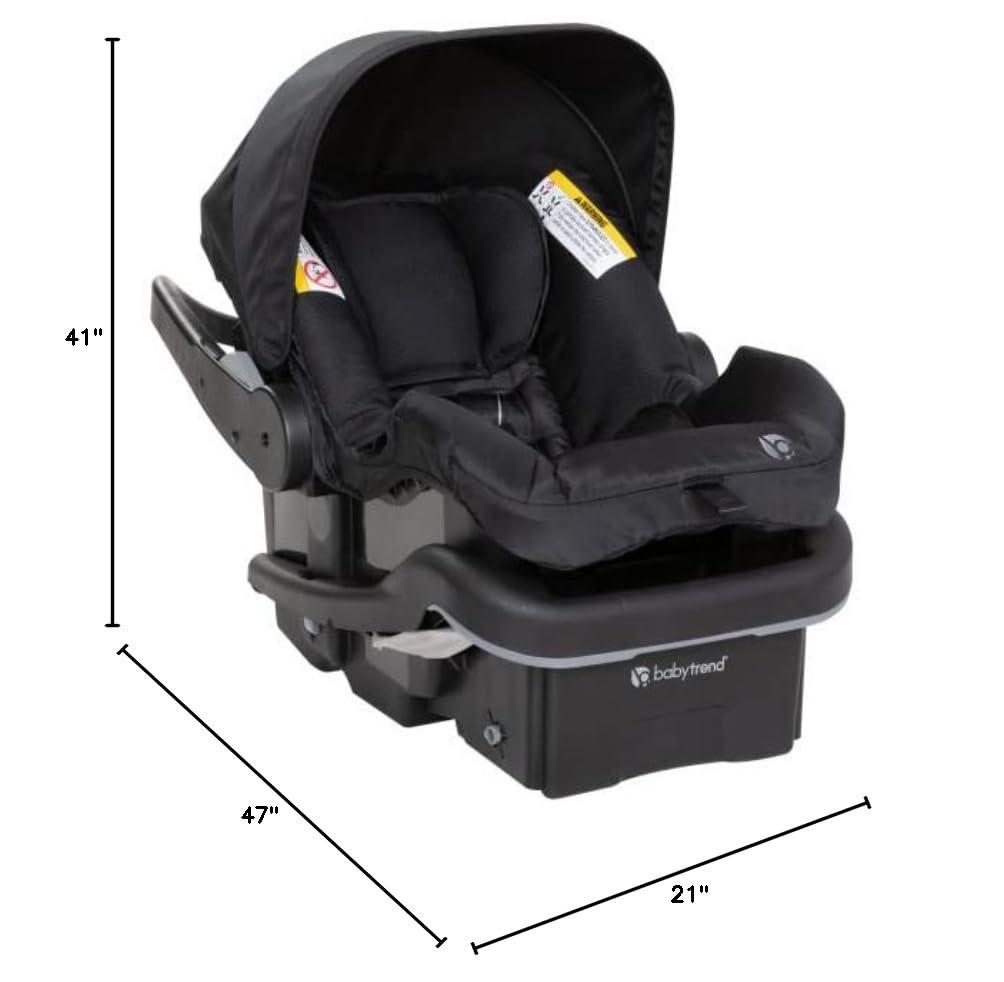 Jog in style with the Baby Trend Expedition DLX Jogger Travel System. Designed with style, safety features, and ease-of-use functions, this sporty jogger guarantees a smooth ride for you and your little one, no matter the destination. Equipped with an adjustable canopy and a peek-a-boo window, this jogger also boasts a large storage basket for essential travel items, a parent tray with 2 cup holders, and a swing away child’s tray with 2 cup holders for drinks and snacks. The jogger also features large 16” all-terrain rear bicycle wheels with air-filled tires. Simply unlock the 12” front swivel wheel for low speed strolling and lock into place to transform into a fully functional jogger. Additional highlights include an extra wide rubber handle, a multiple position reclining seat with a 5-point safety harness and tether strap. This travel system also includes the Baby Trend® Ally™ 35 Infant Car Seat, which provides the latest innovations in safety, design and comfort. This infant car seat has a 35 pound maximum infant weight rating and comes equipped with a deluxe seat pad and reversible infant insert. For added security, Ally™ 35 is engineered with higher, deeper side wings with EPS foam for optimal side impact protection. Other safety features include a 5-point safety harness with one-hand adjustment, a 4-position height adjustable base with dual bubble level indicators and a 6-position crotch belt adjustment.