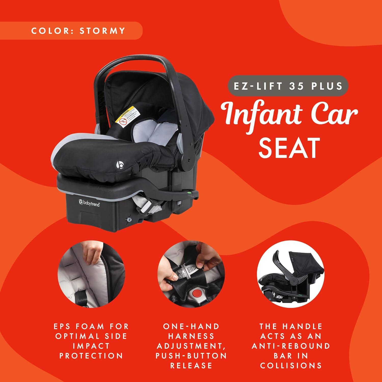 imageBaby Trend EZLift 35 Plus Ergonomic Lightweight RearFacing Infant Car Seat with MultiPosition Base and Cozy Cover Modern KhakiStormy