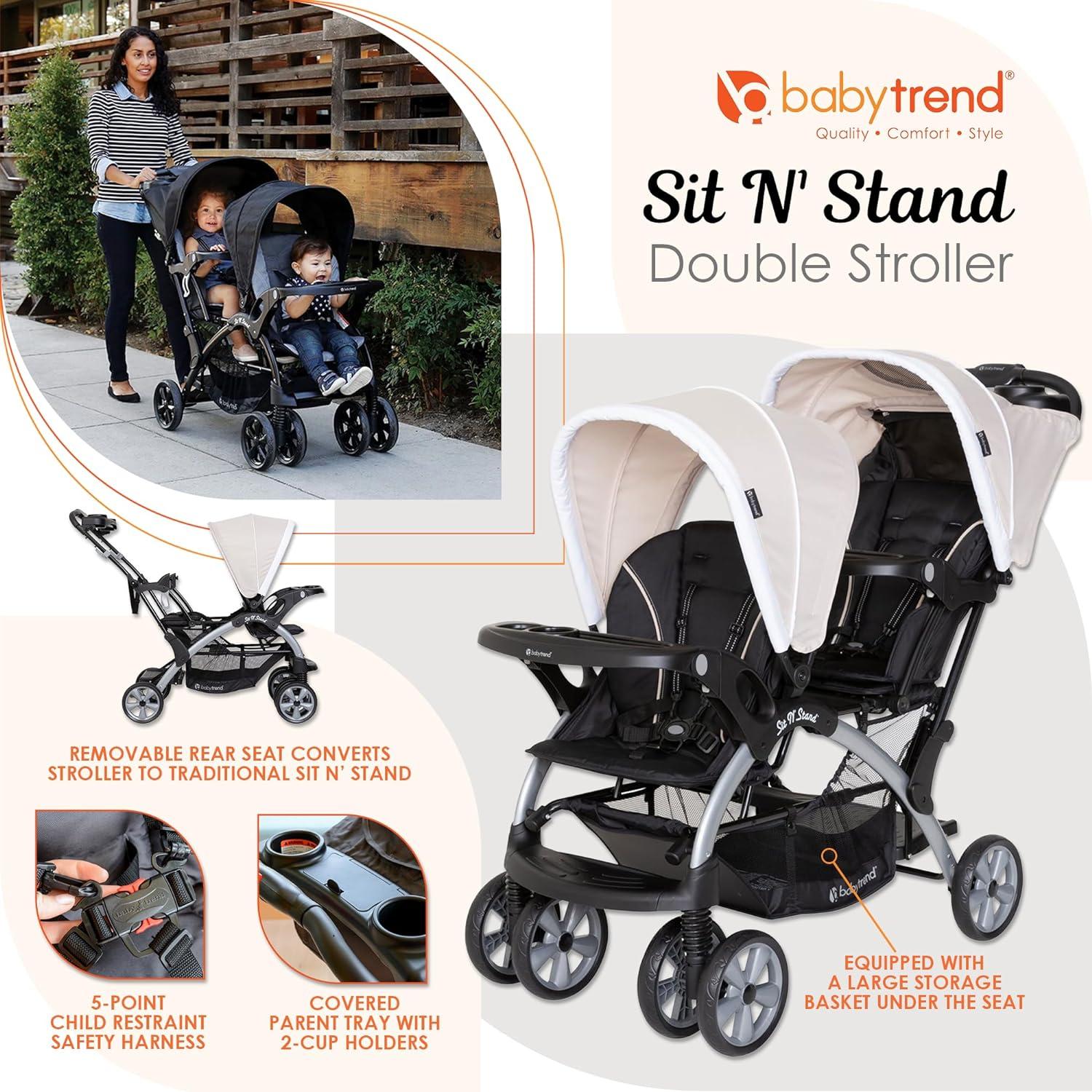 Baby Trend Infant and Toddler Double Stroller & Car Seat Combo, 2 Pc Set, Khaki – Portable and Lightweight Stroller Duo and Car Seat Travel System Tandem(Magnolia)