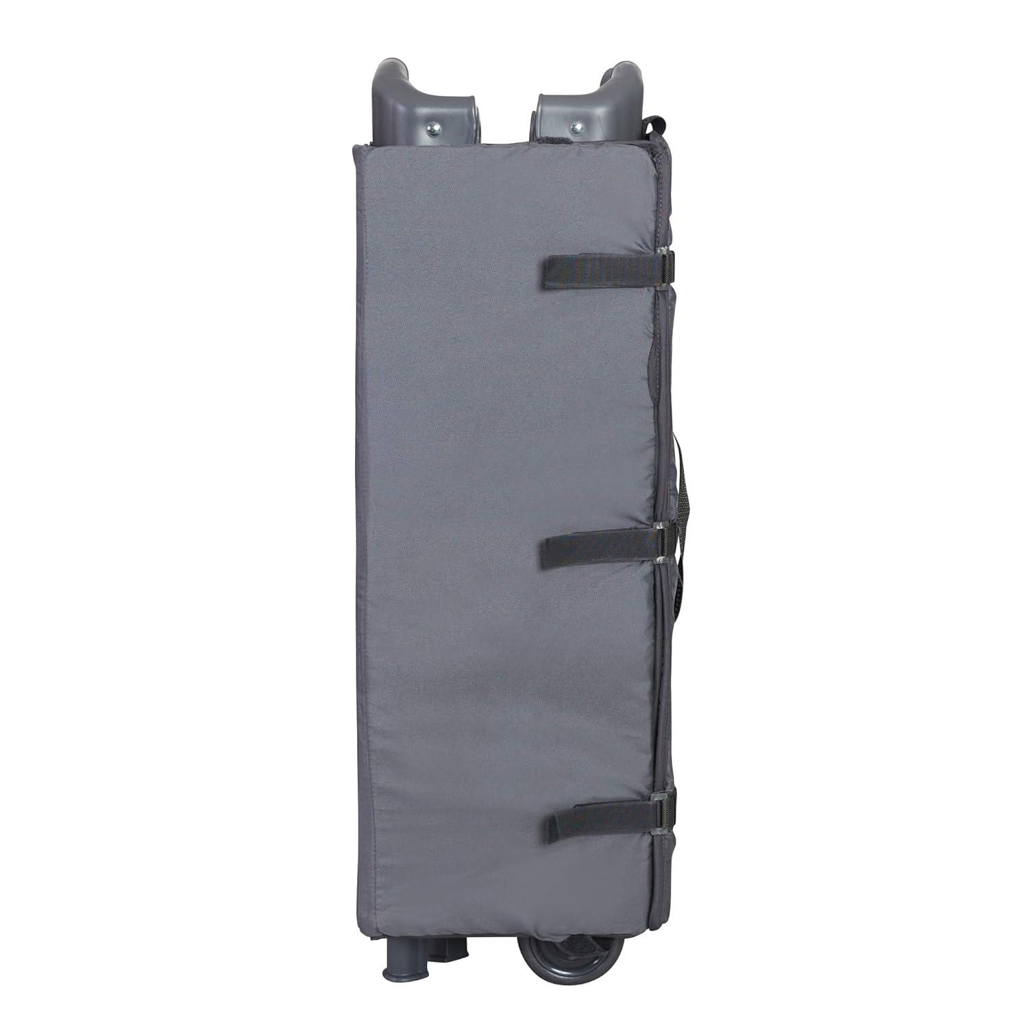 The Baby Trend Nursery Center Playard is gender neutral and fun, perfect for any home or nursery setting. This Playard is featured with a removable full bassinet, a mobile with three adorable plush toys, and a diaper stacker for baby's essentials. Ideal for keeping your child entertained and happily occupied, you can have peace of mind as you tackle household chores. Lightweight and portable, this Playard comes with a travel tote bag so you can easily take it on trips to the park or beach. The one-hand locking mechanism allows you to easily open or close the portable Playard and the two large wheels with brakes provide greater mobility and stability. This Baby Trend Nursery Center is designed for children under 35 inches tall and weighing less than 30 lbs.