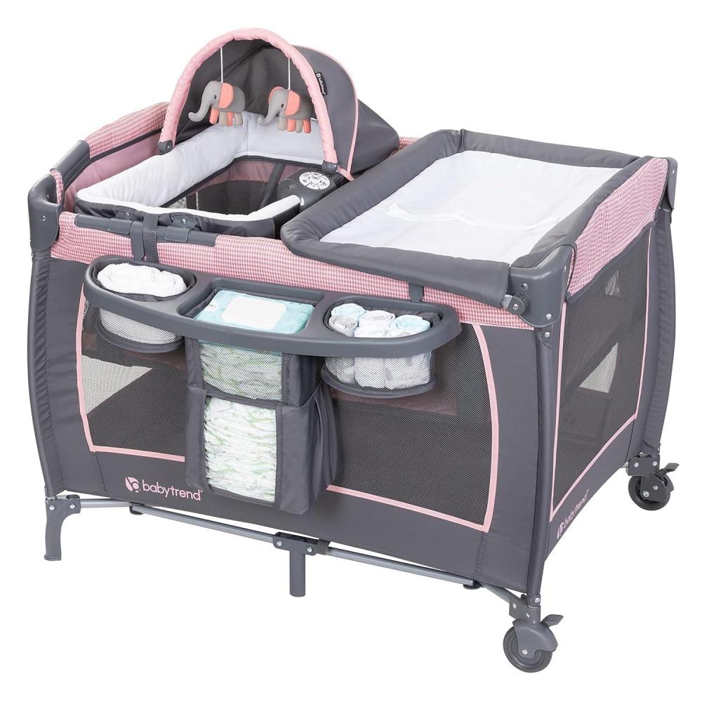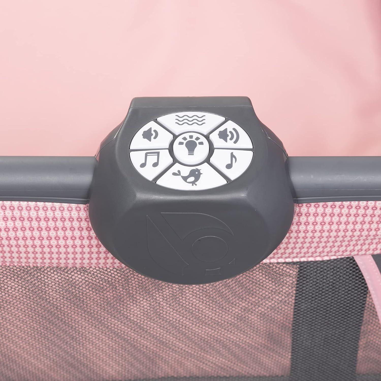 Baby Trend Nursery Center Travel Crib with Removable Rock-A-Bye Bassinet, Changing Table, Organizer, and Electronic Music Center and Nightlight, Robin(Cozy Pink)