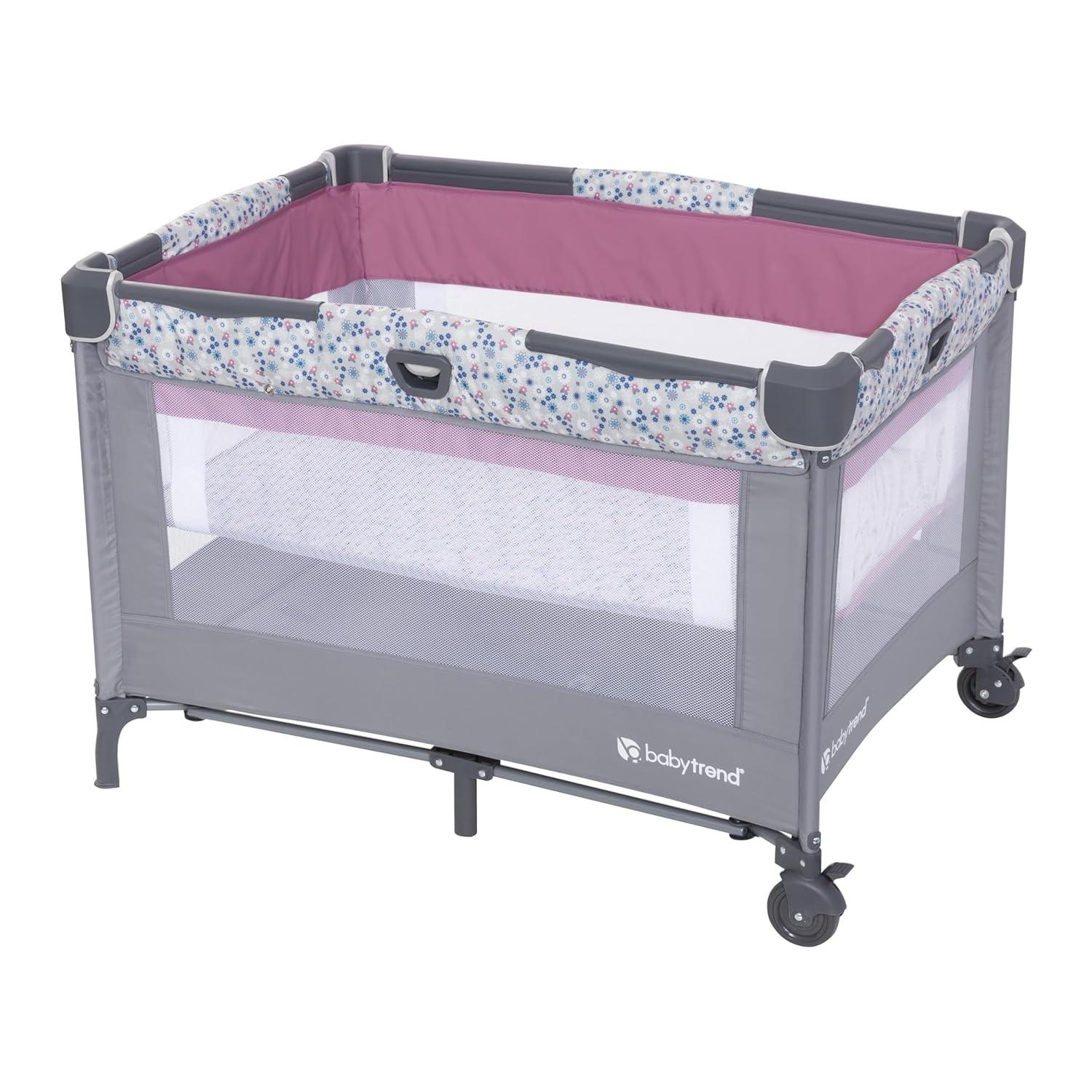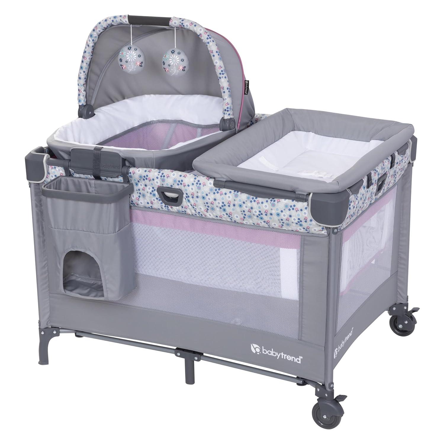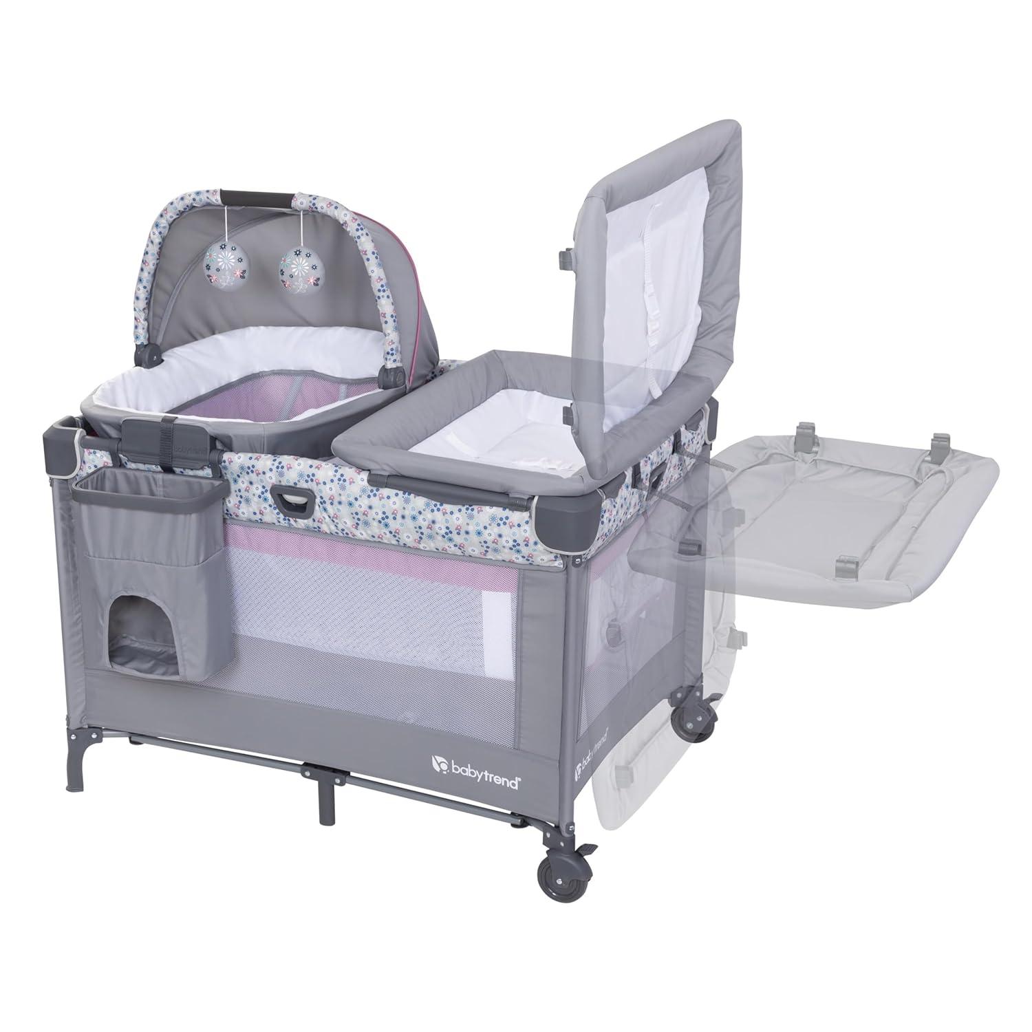 Baby Trend Nursery Den Playard with with Rocking Cradle, Snooze Pod, Flip Over Changer, Daisy Pink(Daisy Pink)
