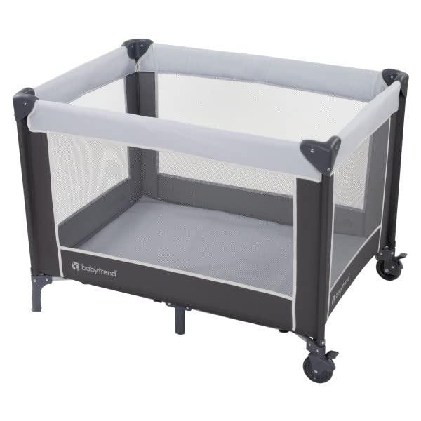 Whether in the living room or at grandma’s house, Baby Trend’s Portable Playard offers the perfect spot for sleepy little one to lay their head. There is plenty of room to keep baby or toddler in place when they are playing. The removable padded floorboard keeps baby cozy and safe. Lightweight and portable, this playard comes with a travel tote bag so you can easily take it on trips to the park or beach. The one-hand locking mechanism allows you to easily open or close the Portable Playard and the two large wheels with brakes provide greater mobility and stability.