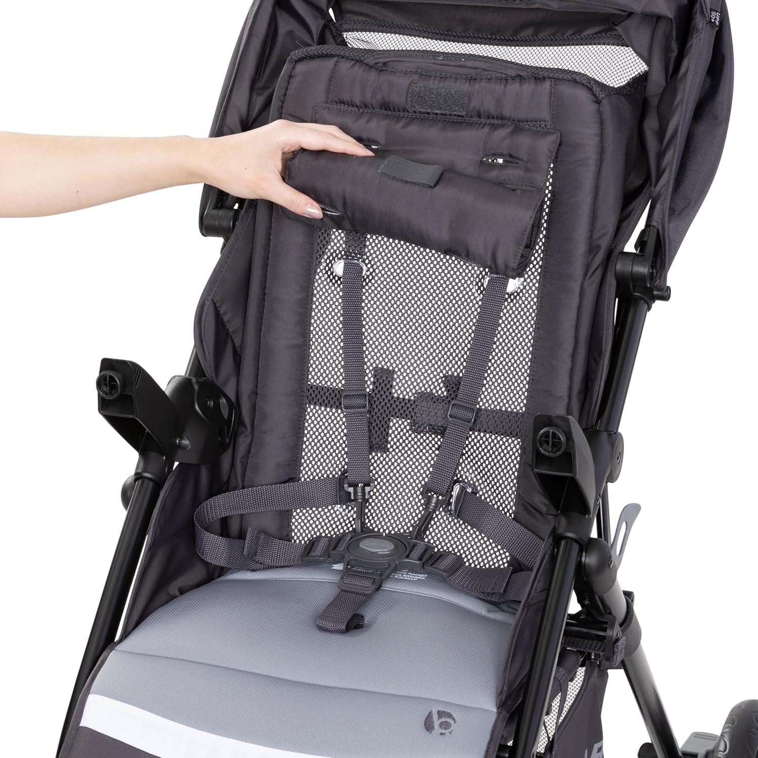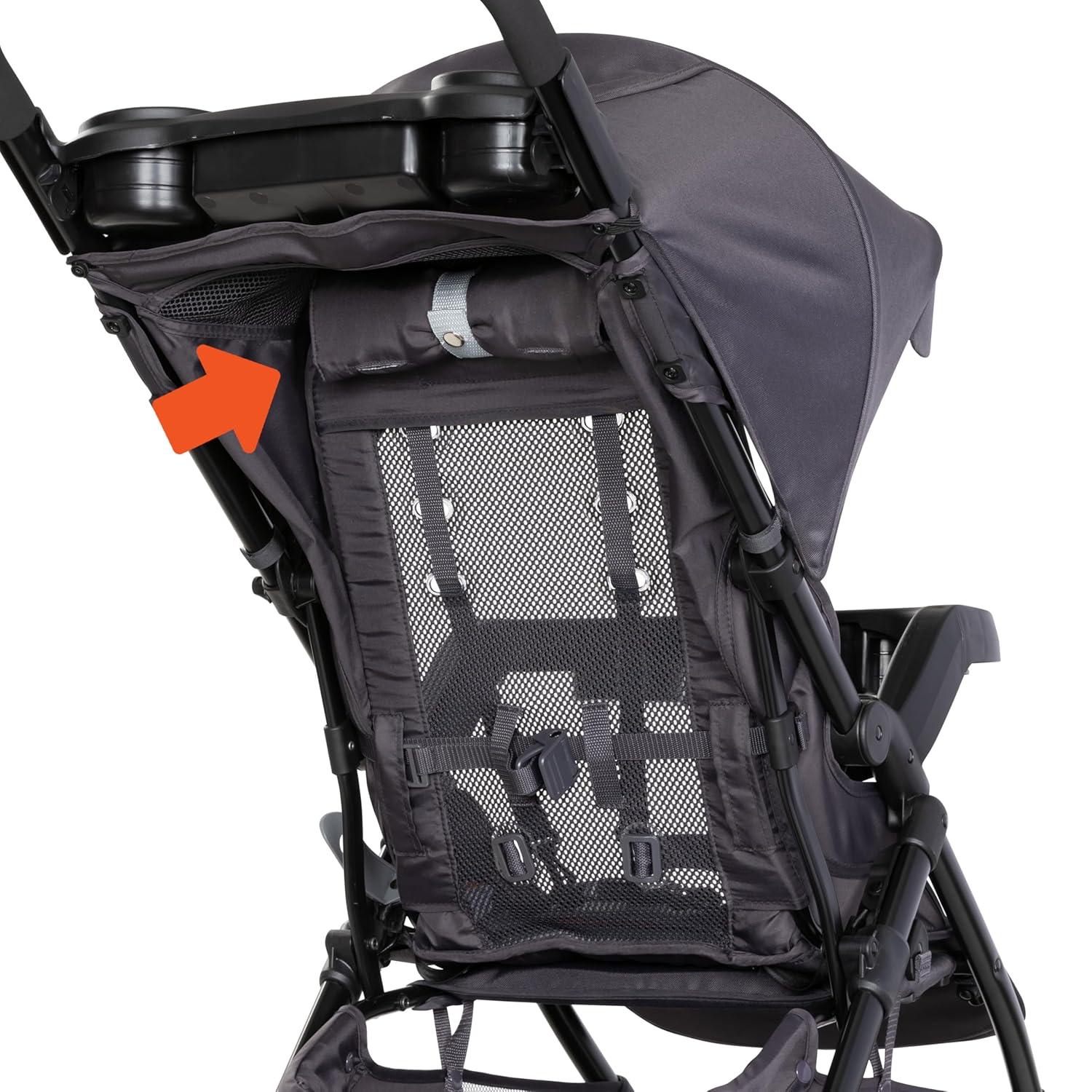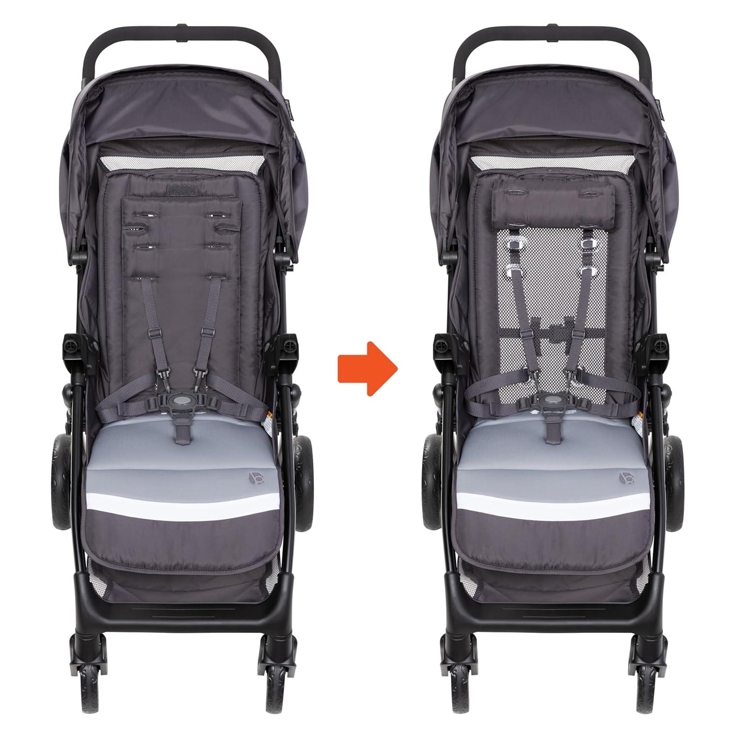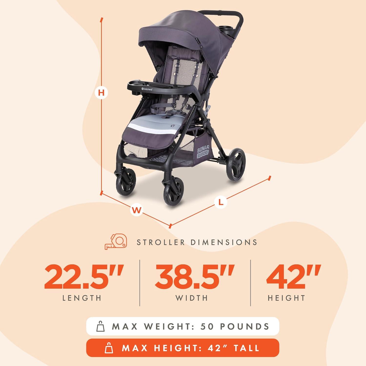 Whether it's Winter, Summer, Spring or Fall — strolling is a breeze with the Sonar Seasons Stroller by Baby Trend. This unique stroller can convert from a traditional backrest to a breathable, mesh backrest by rolling the seat back up. Once it is rolled up, the seat back can be used as a pillow or it can be stored behind the stroller seat. The Sonar Seasons has a large basket that has both front and rear access, as well as a parent tray and child tray with cup holders and storage.
